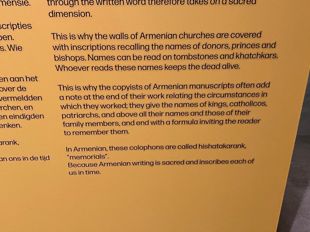 Armenians believe as long as people remember those who died, they’re not really dead. Texts are important for memory and remembering others.